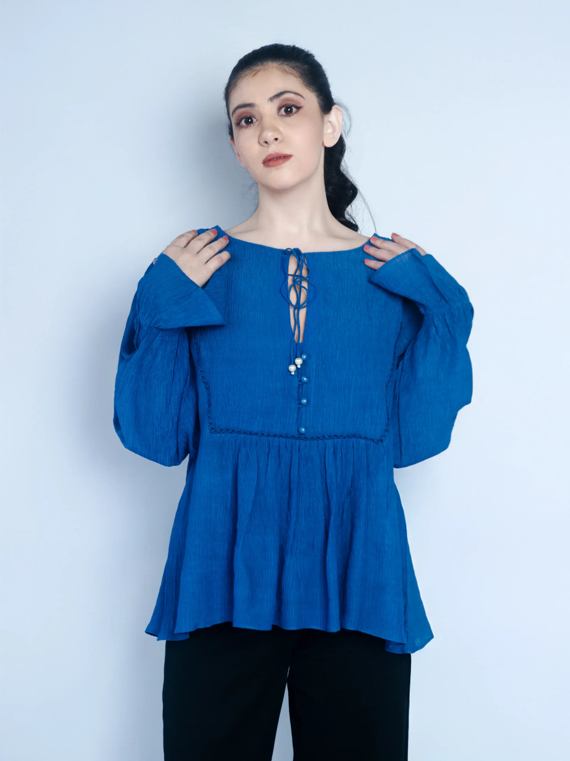 Description Azure Peplum Chic in Crinkle-textured fabric with a Regular fit—made for effortless, polished everyday styling.