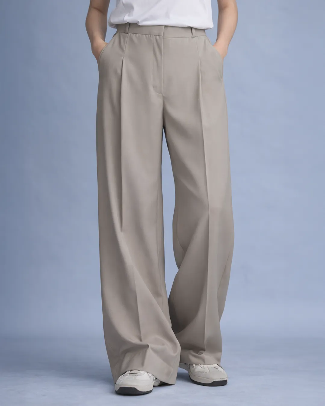 Neutral taupe wide-leg pants designed for effortless outfits.